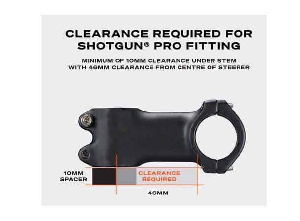 - Shotgun Pro inkluderer 2 spacere, for å bruke med to sykler. Installasjon av Shotgun Pro Spacer erstatter 10mm med vanlig spacer på sykkelen.